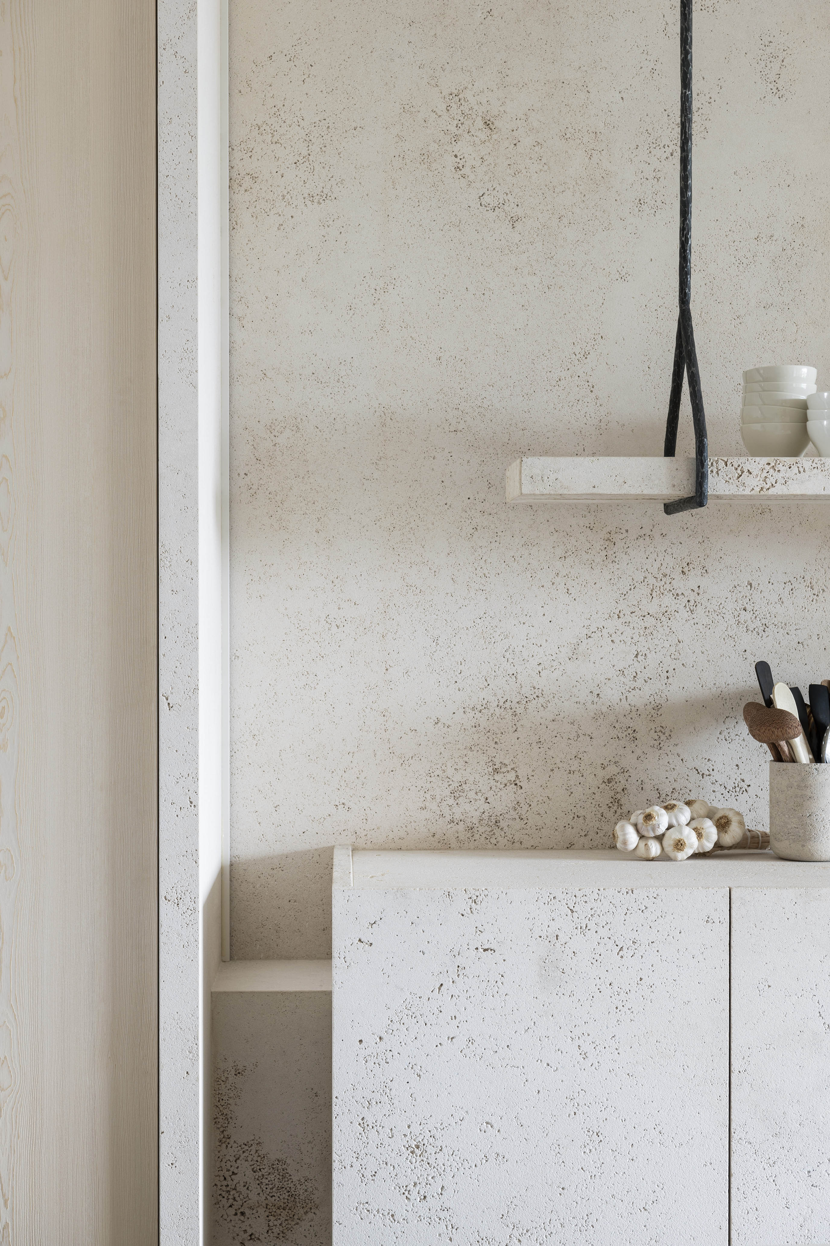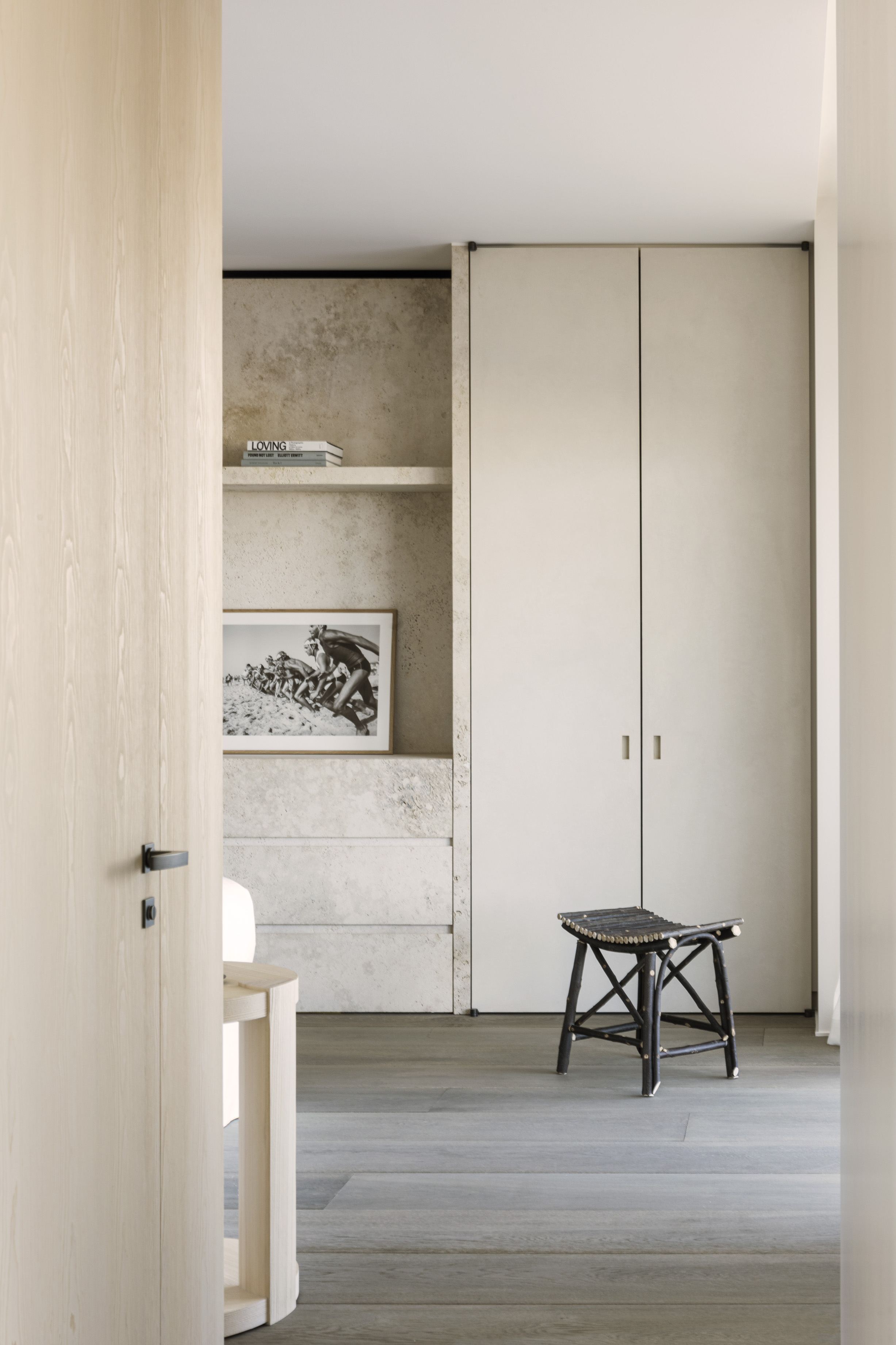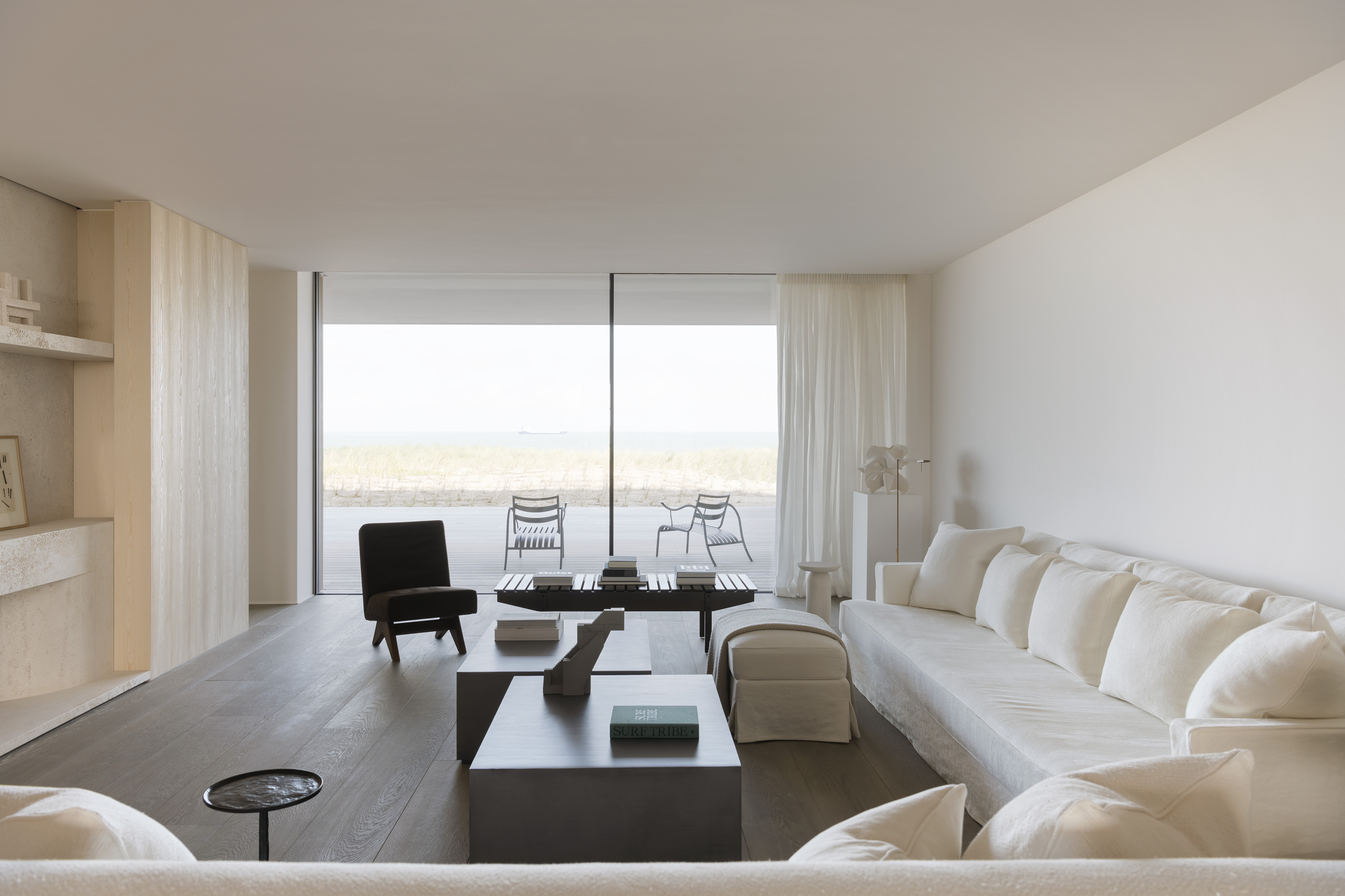 Situé dans le nouveau projet 'De Blanke Top' à Cadzand du Group Versluys, nos principes de conception sont illustrés: un appartement à plan ouvert, des matériaux ton sur ton liés à sa situation géographique tout en étant diversifiés par ses textures subtiles et tactiles. Avec une vue imprenable sur les dunes, les matériaux utilisés sont un prolongement du bord de mer hollandaise. Le bois d'épicéa sablé nous rappelle les vagues douces, la pierre naturelle beige di medici à structure ouverte et l'enduit à la chaux granuleuse imitent le sable de la plage. Une fois entré dans l'espace, on est accueilli par un sentiment de tranquillité.