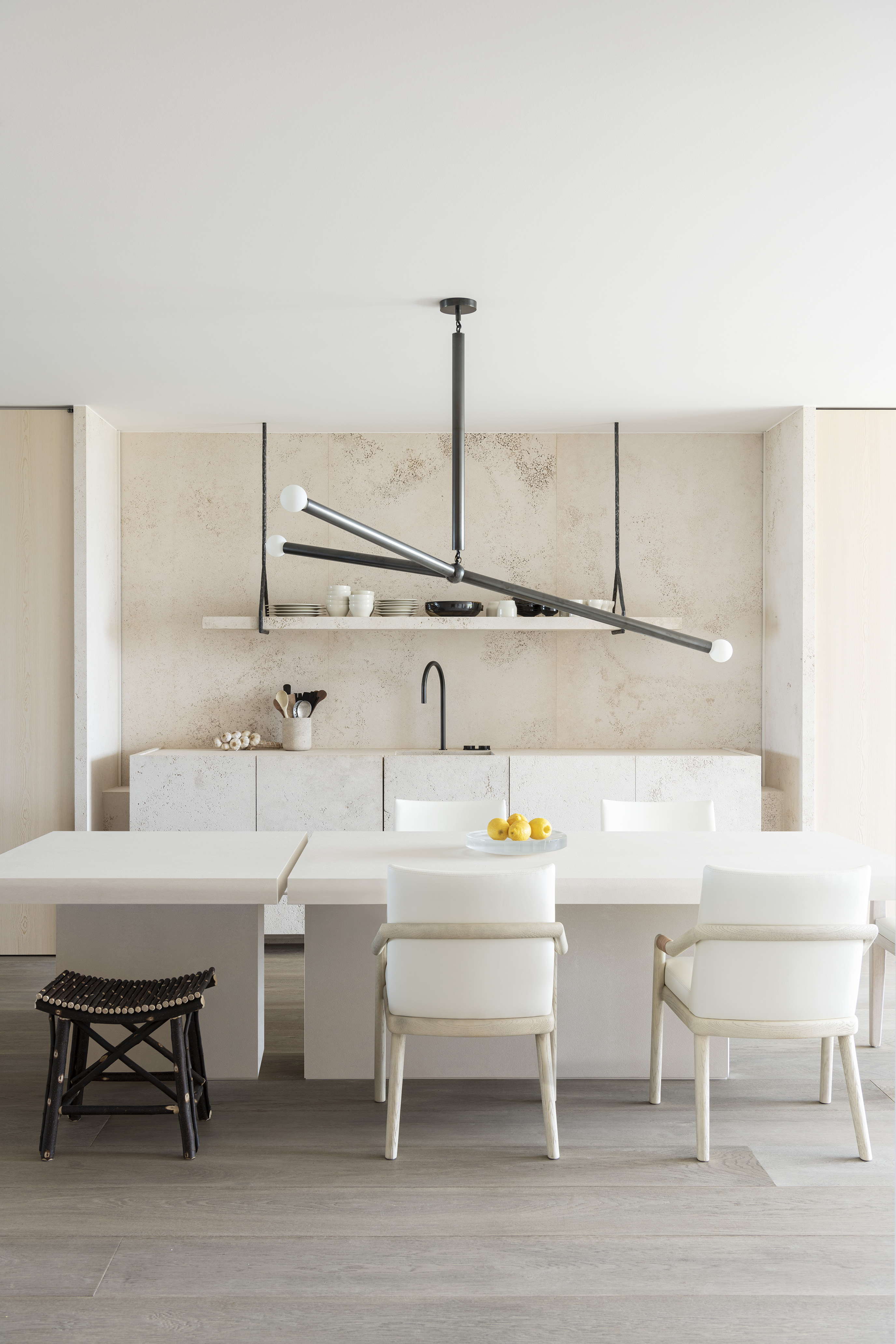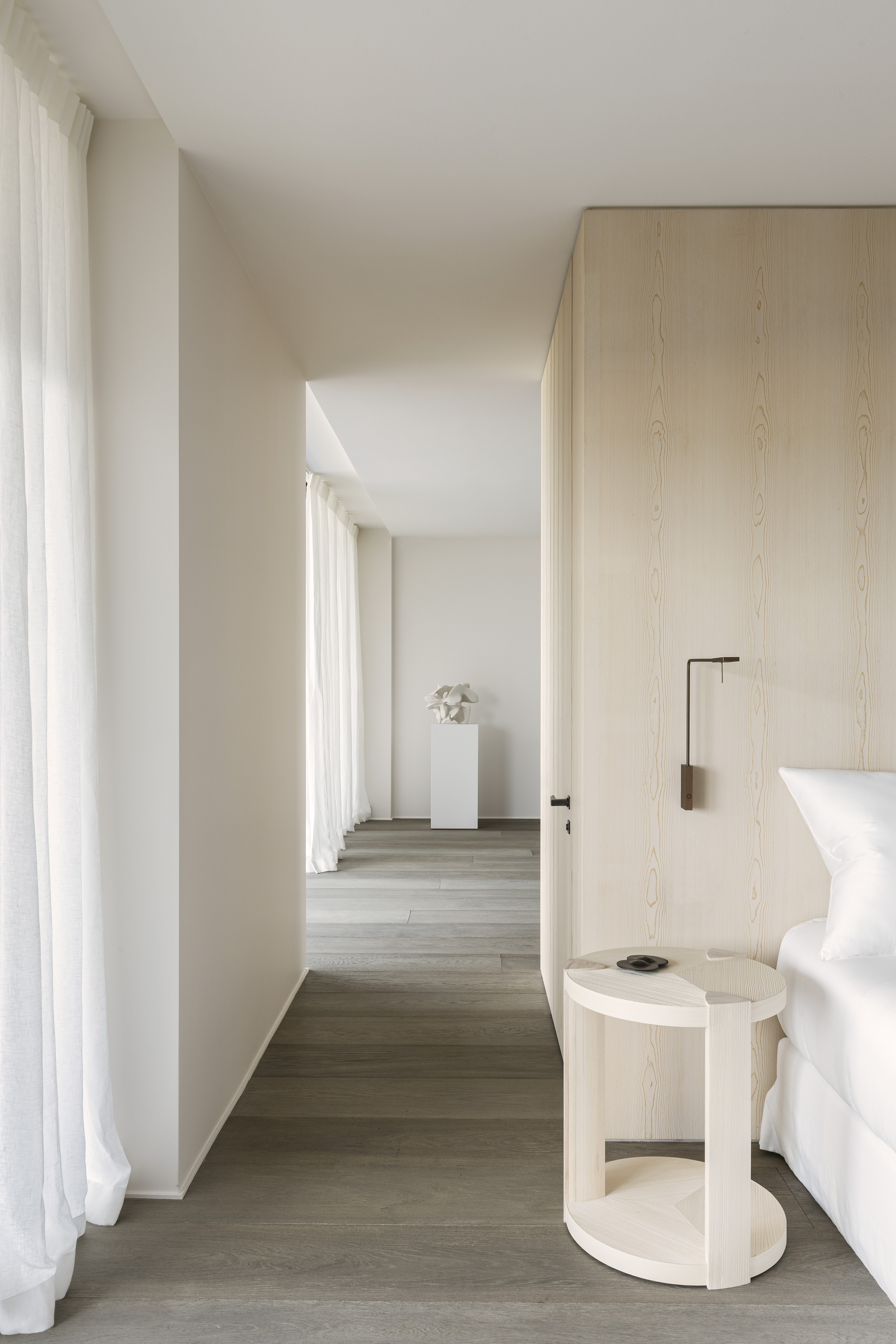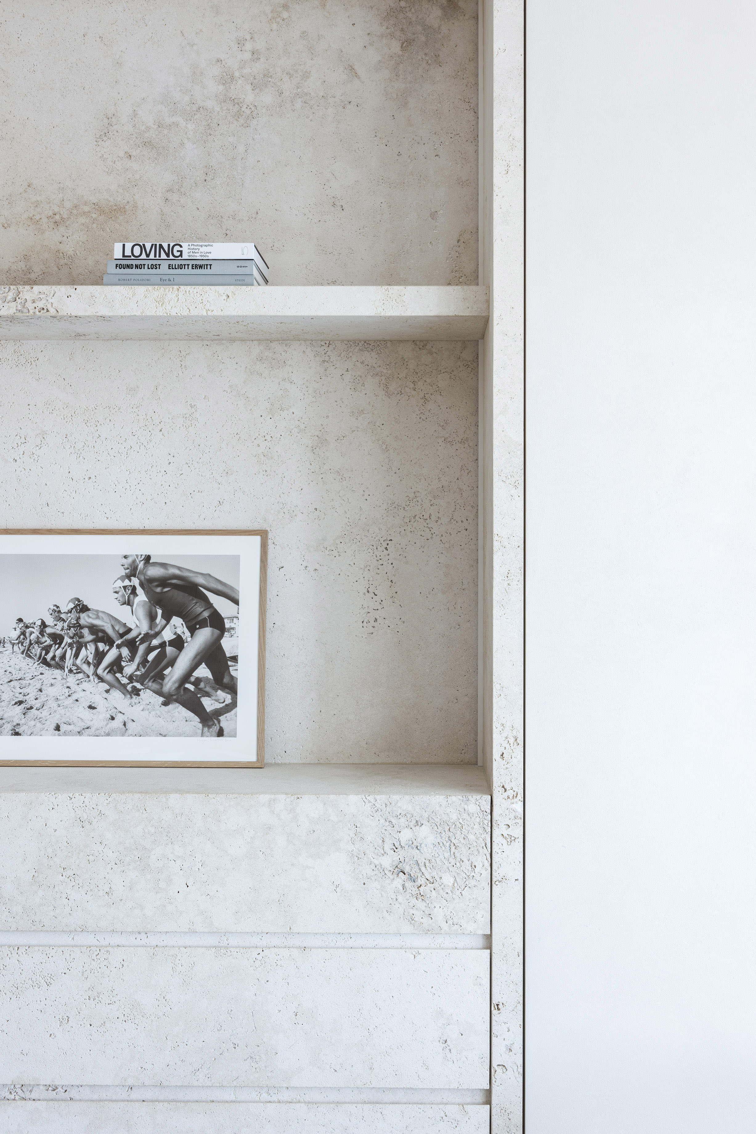 Situé dans le nouveau projet 'De Blanke Top' à Cadzand du Group Versluys, nos principes de conception sont illustrés: un appartement à plan ouvert, des matériaux ton sur ton liés à sa situation géographique tout en étant diversifiés par ses textures subtiles et tactiles. Avec une vue imprenable sur les dunes, les matériaux utilisés sont un prolongement du bord de mer hollandaise. Le bois d'épicéa sablé nous rappelle les vagues douces, la pierre naturelle beige di medici à structure ouverte et l'enduit à la chaux granuleuse imitent le sable de la plage. Une fois entré dans l'espace, on est accueilli par un sentiment de tranquillité.